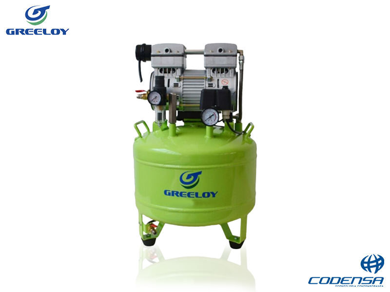 Greeloy GA-81 es un compresor de aire semi-silencioso y sin aceite, diseñado principalmente para aplicaciones dentales y médicas que requieren aire limpio y seco.