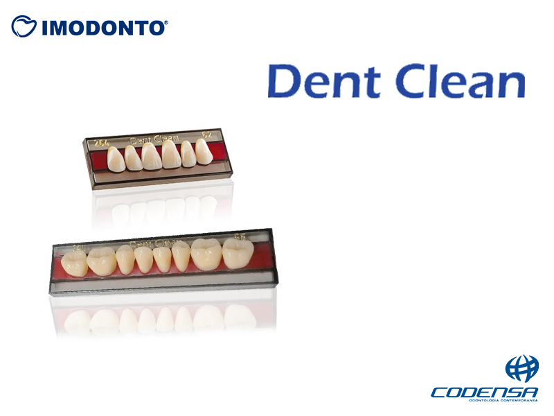 Las características principales de Imodonto Dent Clean son su resistencia mecánica, química y a la abrasión, la estabilidad del color y dimensional, la fluorescencia natural y un aspecto estético armonizado con la oclusión y detalles anatómicos. Está hecho de resina acrílica de doble prensado y se utiliza en diversas prótesis, incluyendo totales, parciales, removibles y temporales.
