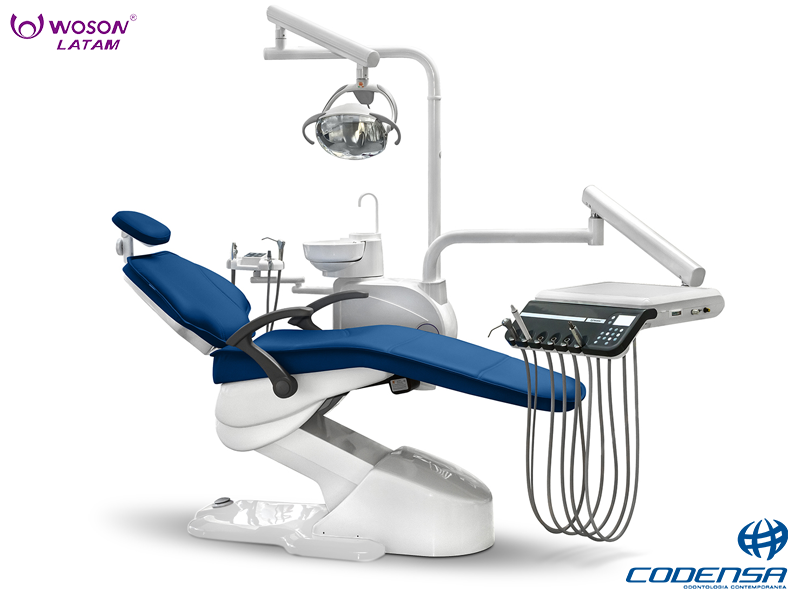 El SILLON WODO CLASSIC se caracteriza por su diseño ergonómico y robusto, que incluye una silla con sistema de elevación pantográfico y capacidad para 200 kg, y un equipo con mangueras suspendidas y control electrónico multifunción. Entre sus características destacan la unidad hídrica auxiliar, el reflejo sin sombras del equipo con luz LED, el mocho ergonómico, el sistema de seguridad con «stop-system» y la posibilidad de configuraciones para diestros o zurdos.